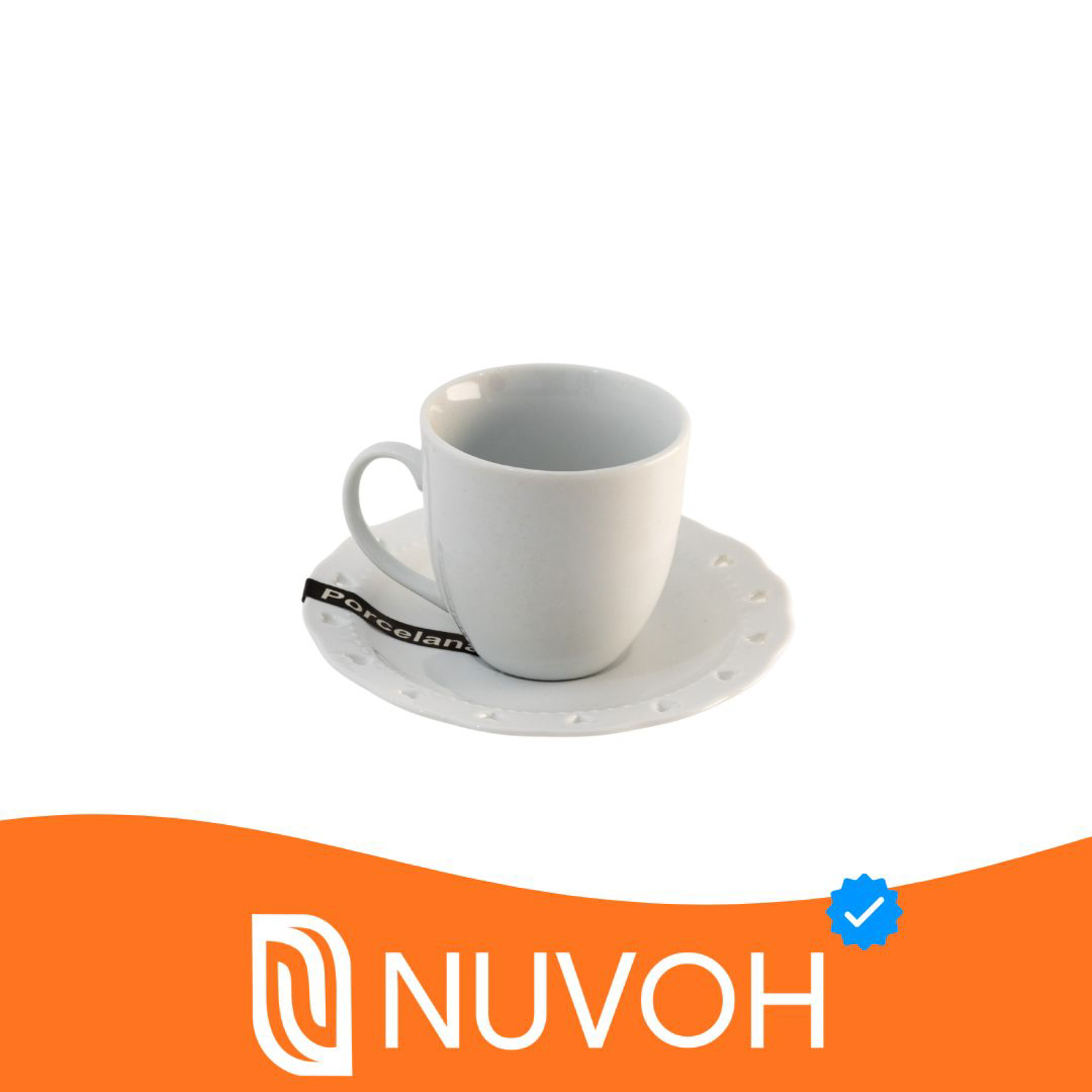 Disfrutá tu café con estilo con esta elegante taza de porcelana con plato de 120cc.