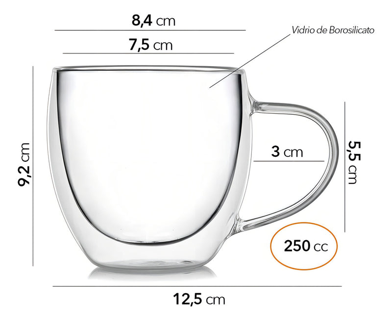 Además, el vidrio borosilicato es conocido por su resistencia a los cambios de temperatura, lo que significa que puedes pasar de una bebida caliente a una fría sin preocuparte por el agrietamiento o la rotura del vidrio. Esto hace que la Taza Cafe Expresso Doble Pared Vidrio 250 Cc sea una opción duradera y de larga duración para cualquier amante del café.